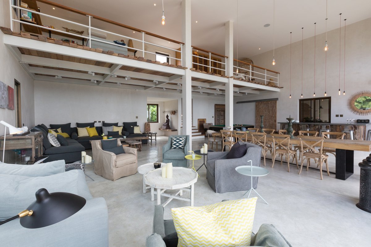 Каждый из трех просторных этажей виллы имеет свою ярко выраженную индивидуальность: при входе на виллу вы оказываетесь на этаже с гостиной и обеденной зонами. Второй этаж предназначен для веселья и развлечений, а на самом верхнем расположились три из пяти спальных комнат. Гостевые спальни, расположенные на каждом из двух нижних этажей, делают проживание на вилле невероятно удобным для нескольких семей, отдыхающих вместе.