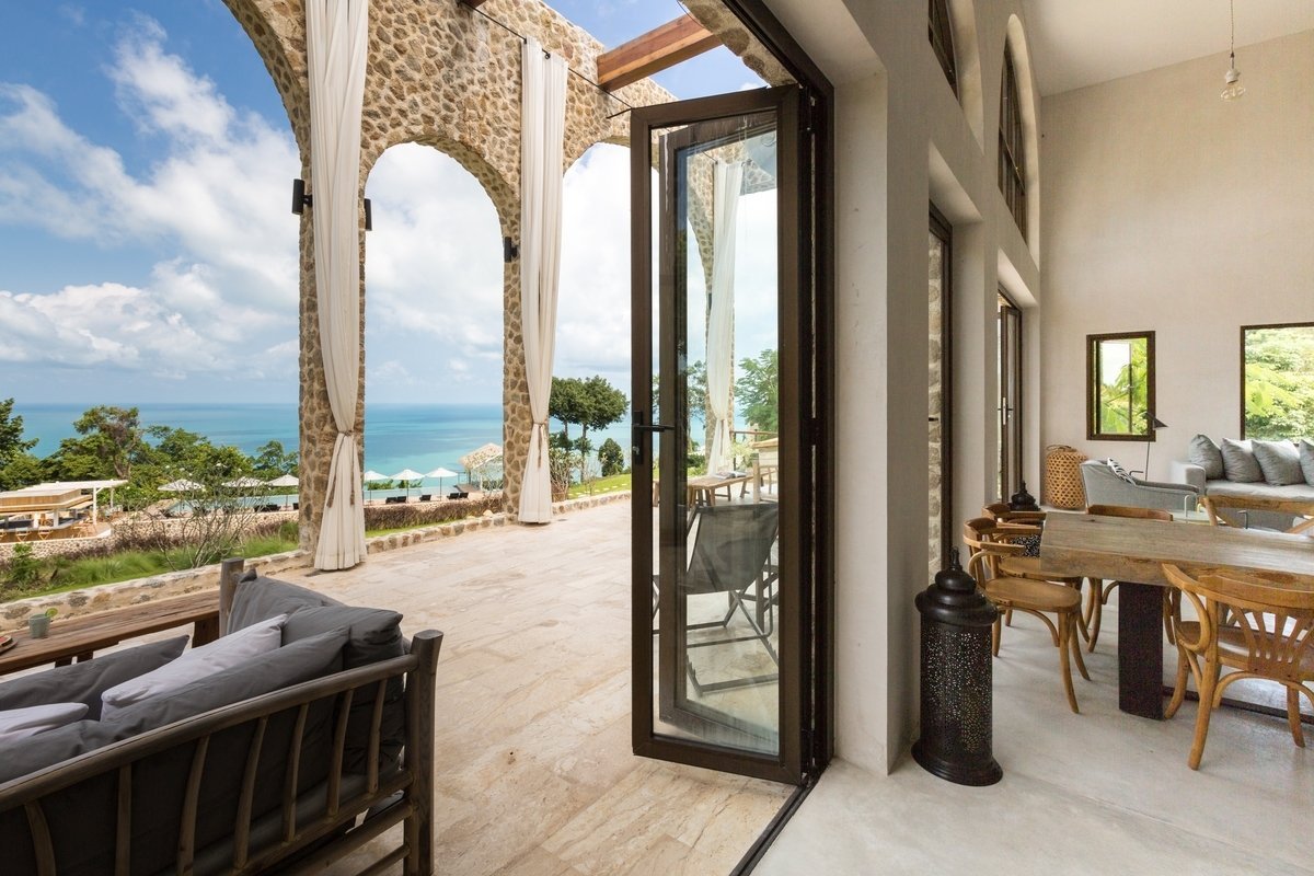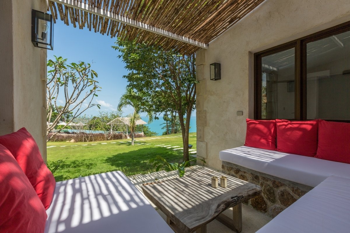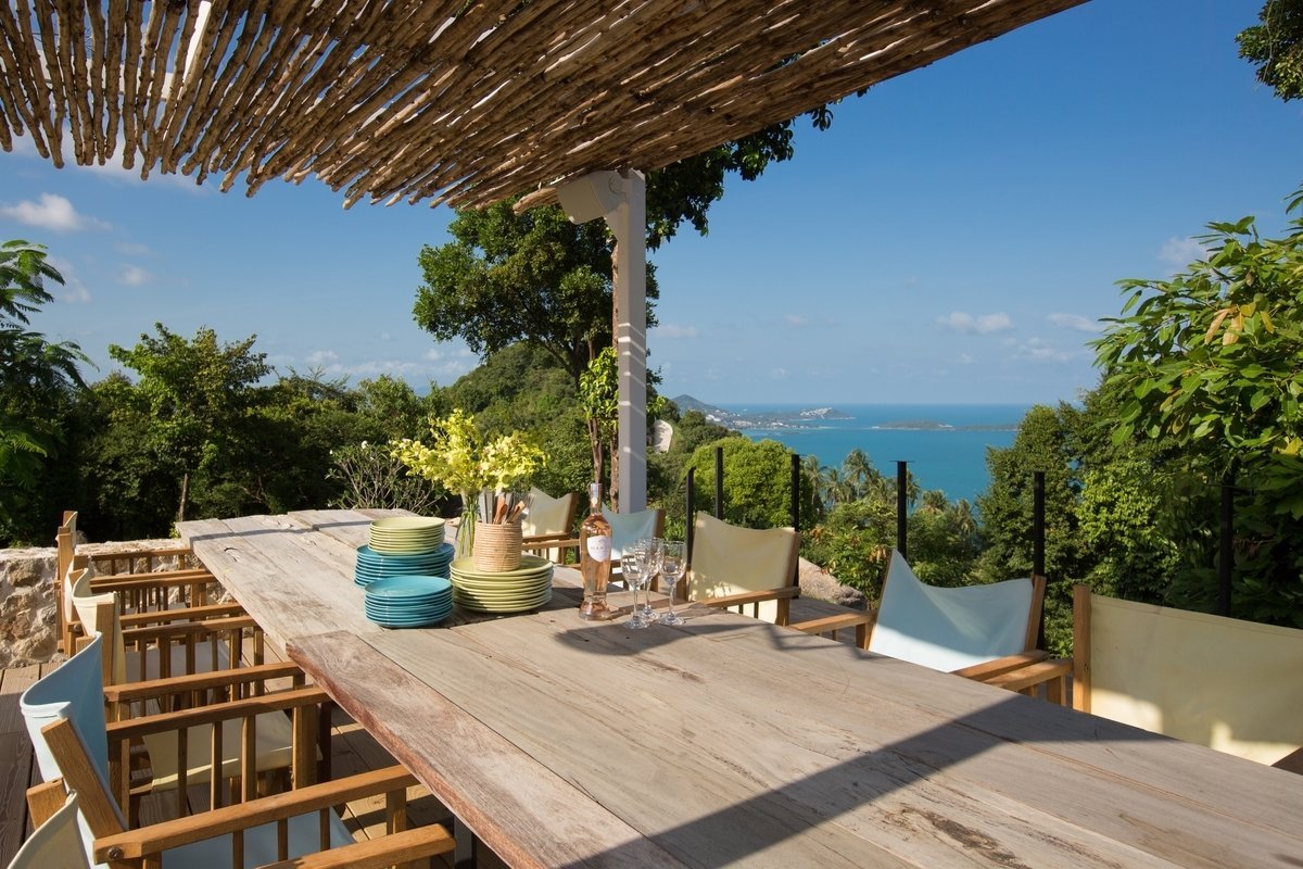 Потрясающая вилла, расположенная на холмах Чонг Мон, с великолепным видом на кокосовую рощу, океан и соседний остров Панган.