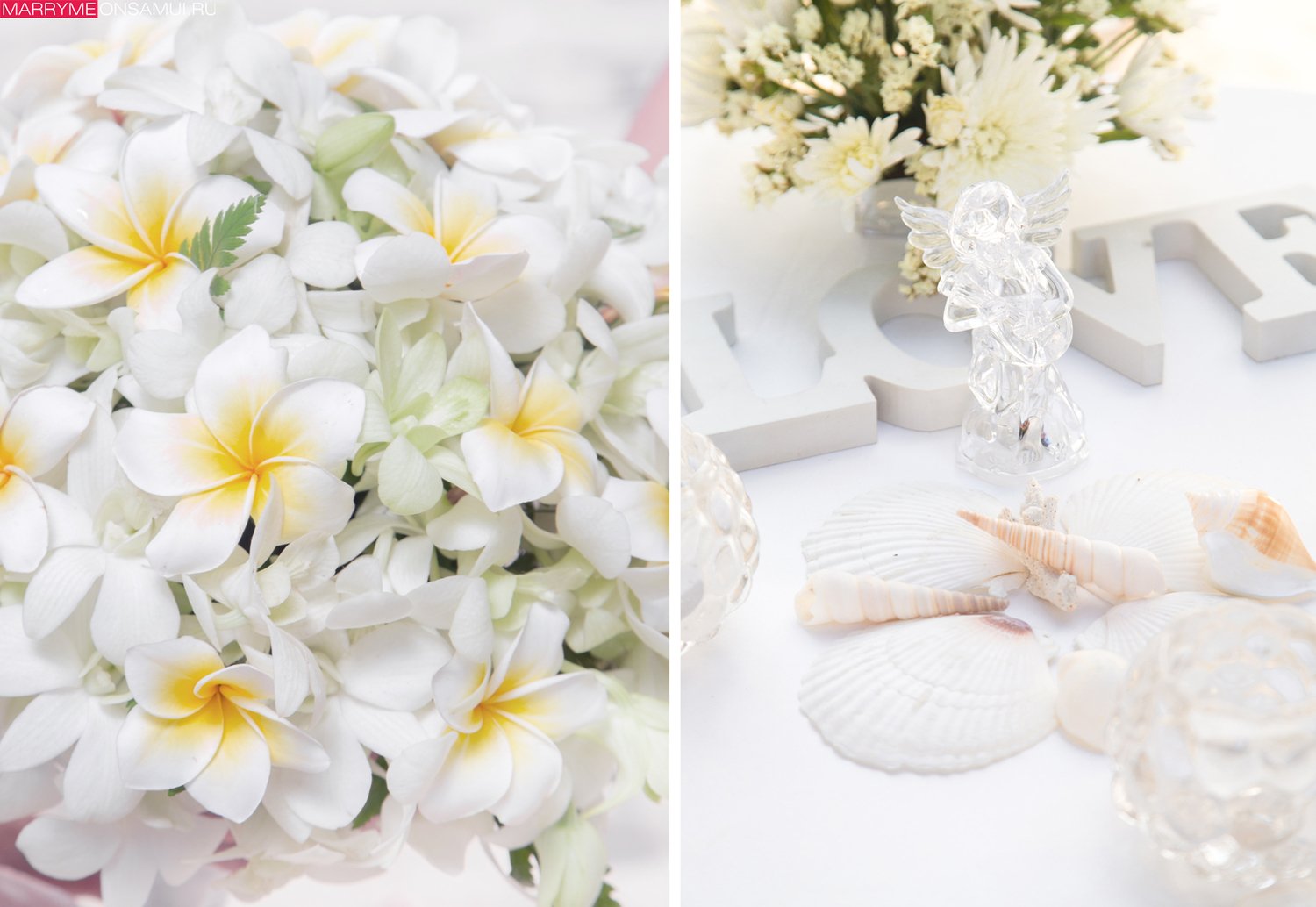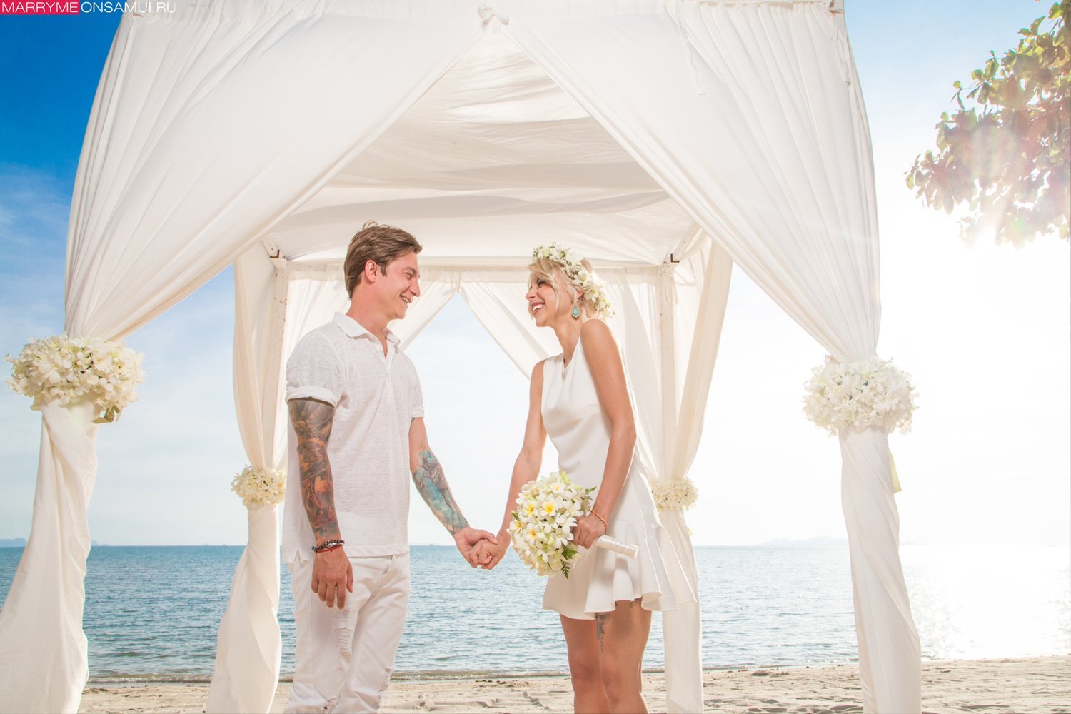 - Цветочная арка или шатер, для проведения церемонии. Вы можете выбрать шатер или классическую арку из живых цветов в нашем каталоге; Арки (http://marrymeonsamui.ru/svadby-na-samui-fotootchety#svadebnye-arki) Букеты (http://marrymeonsamui.ru/svadby-na-samui-fotootchety#svadebnye-bukety)